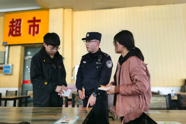 本次活动主要由“防诈骗知识宣讲”和“张贴反诈宣传提示贴”两个环节组成。首先,雪浪派出所杨恺警官为到场学生们介绍了最近频频出现的新型诈骗手段,让同学们要时刻保持警惕之心,牢记不会有“天上掉馅饼”的美事,也叮嘱在场的同学们回去要积极地向身边的同学、朋友宣传反诈知识,提高防诈意识。随后,后勤党总支第二支党支部党员同志和杨恺警官以及学生一起为食堂餐桌贴上反诈宣传提示贴,让反诈宣传贴近生活、融入生活。