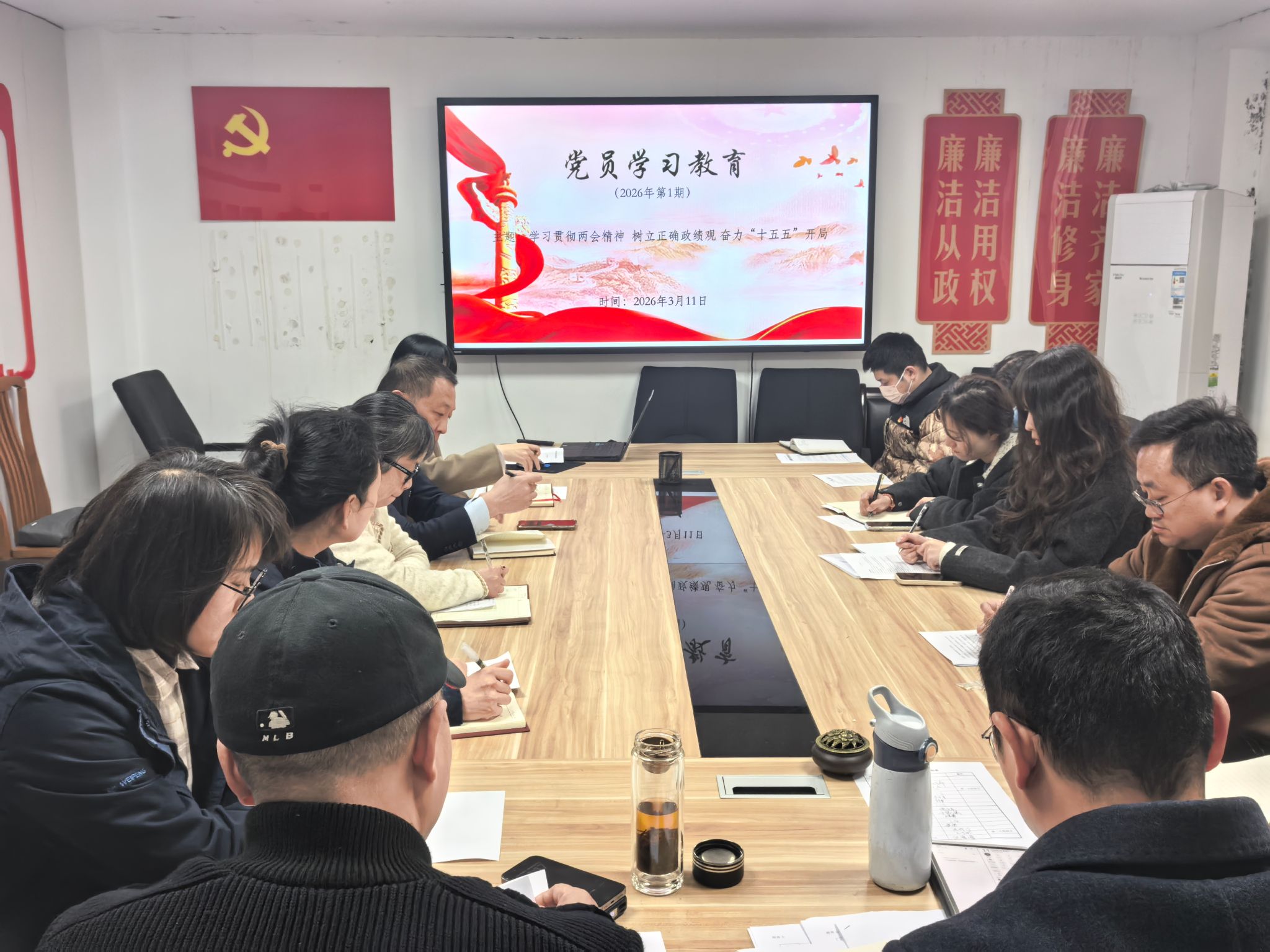 3月11日下午,后勤管理处党支部在恒生楼104党员活动室召开党员集中学习会,本次会议的主题是:“学习贯彻两会精神 树立正确政绩观 奋力“十五五”开局”。会议由宣传委员李洪军主持,后勤管理处党支部全体党员参加了本次学习会。