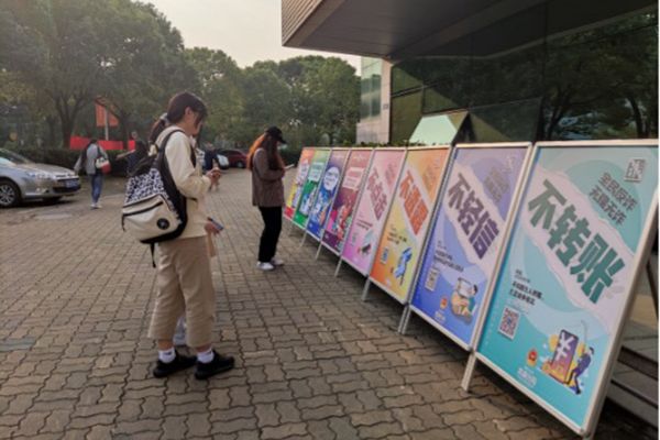 为切实增强师生的反诈防骗能力,有效遏制校园电信网络诈骗案件的发生率,努力营造“全民反诈,无锡无诈”的校园氛围,我校积极贯彻落实习近平总书记对打击治理电信网络诈骗犯罪工作的重要指示精神,制订了《无锡职业技术学院“无诈校园”建设活动方案》,在全校范围内多渠道、全方位、线上线下齐开展宣传活动,将防诈骗宣传延伸到校园的各个角落,注重源头治理、综合治理,坚持齐抓共管、群防群治。
