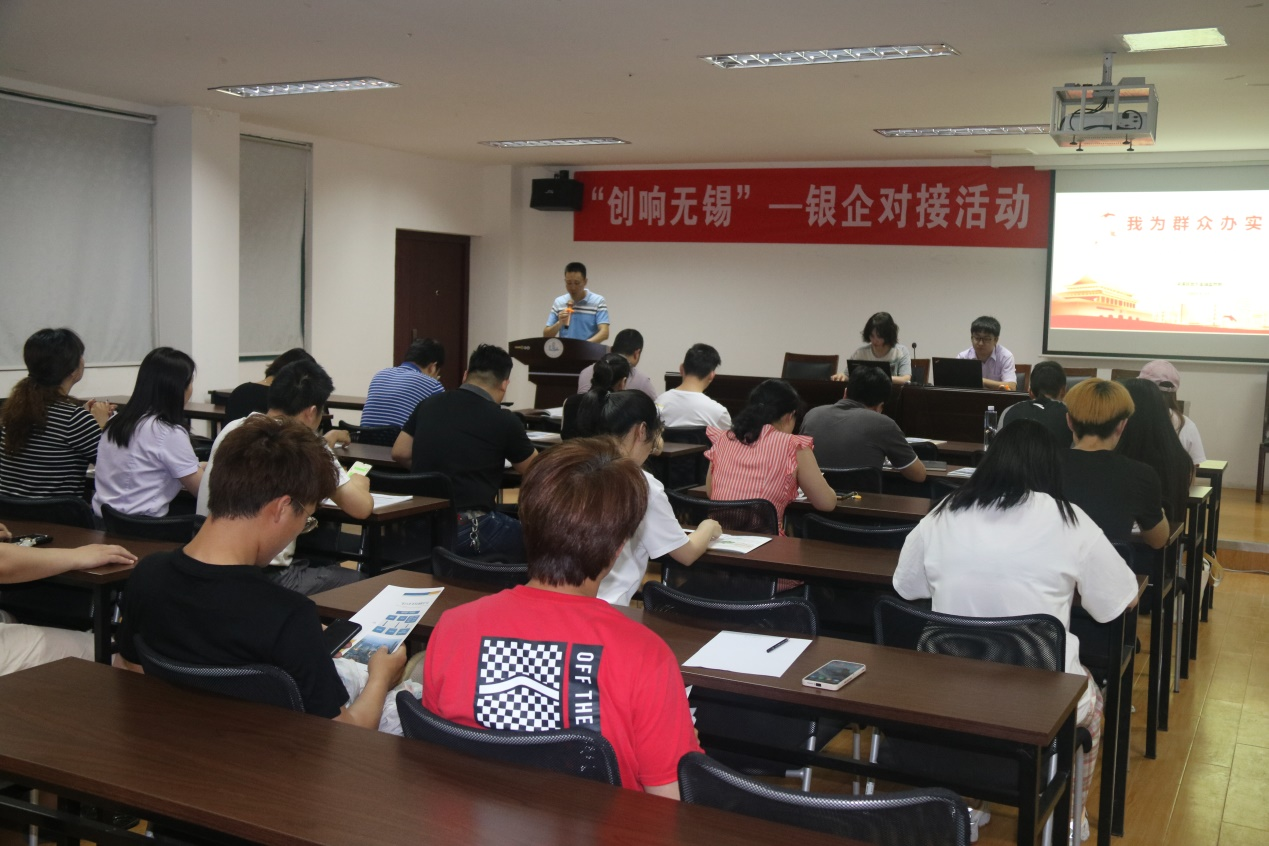 5月31日下午,我校大学生创业园联合梁溪区金融监督管理局、金星街道经发局举办了“创响无锡”银企对接活动,活动在中桥校区实验楼二楼第一会议室顺利举行,园区内16家企业代表及农业银行梁溪支行工作人员参加了活动。