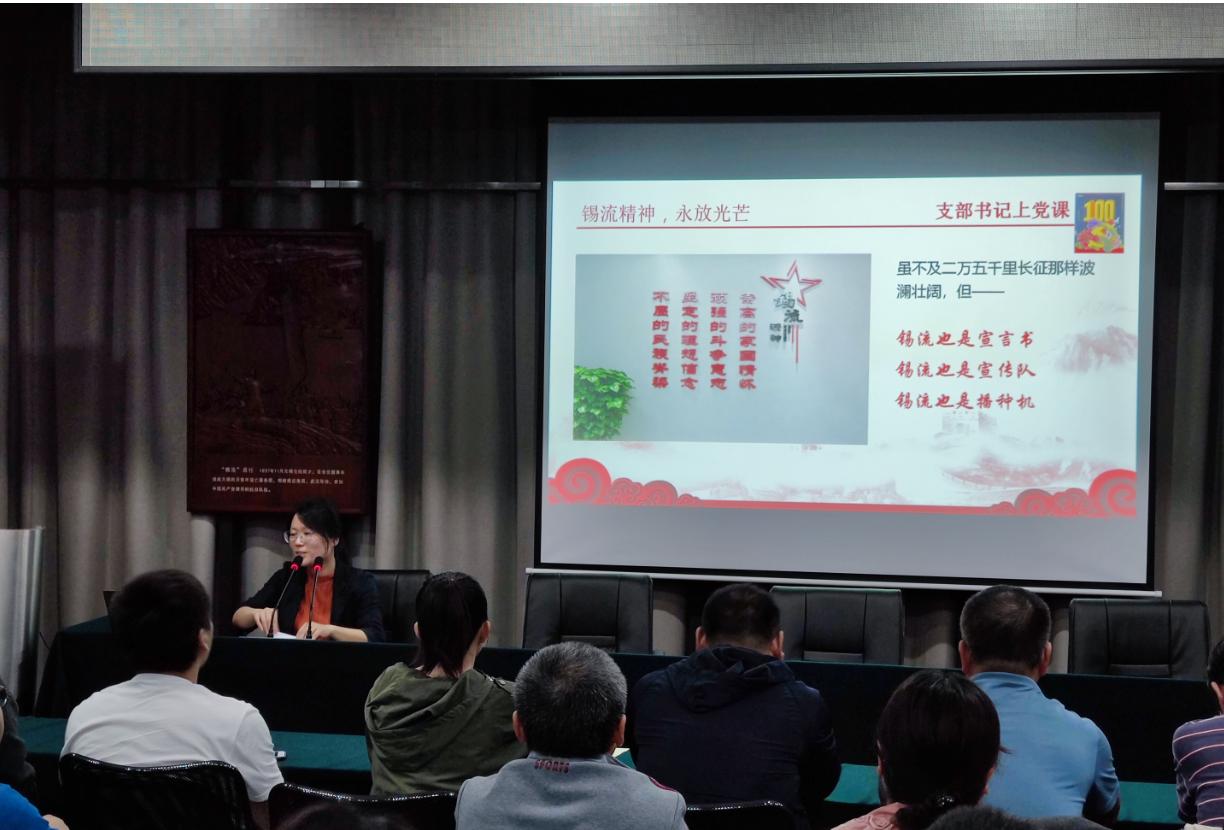 在无锡“第一支部”党建基地,后勤党总支全体成员参观了新中国无锡第一面五星红旗升旗处,瞻仰了秦起烈士铜像、第一支部会址群雕等。基地二楼的革命史画,浓缩了无锡人民在中国共产党领导下进行革命的奋斗历程,12位杰出的无锡共产党人生平,展现了无锡儿女在革命和建设年代作出的辉煌业绩。随后,后勤党总支第二党支部书记吴香菊同志为全体党员带来了一堂以“锡流精神,永放光芒”为主题的党课,党员同志们跟随红色足迹回到了无锡沦陷前夕的那段历史,同志们深深被锡流所展现的家国情怀、坚定信念、斗争意志和民族精神所感染。
