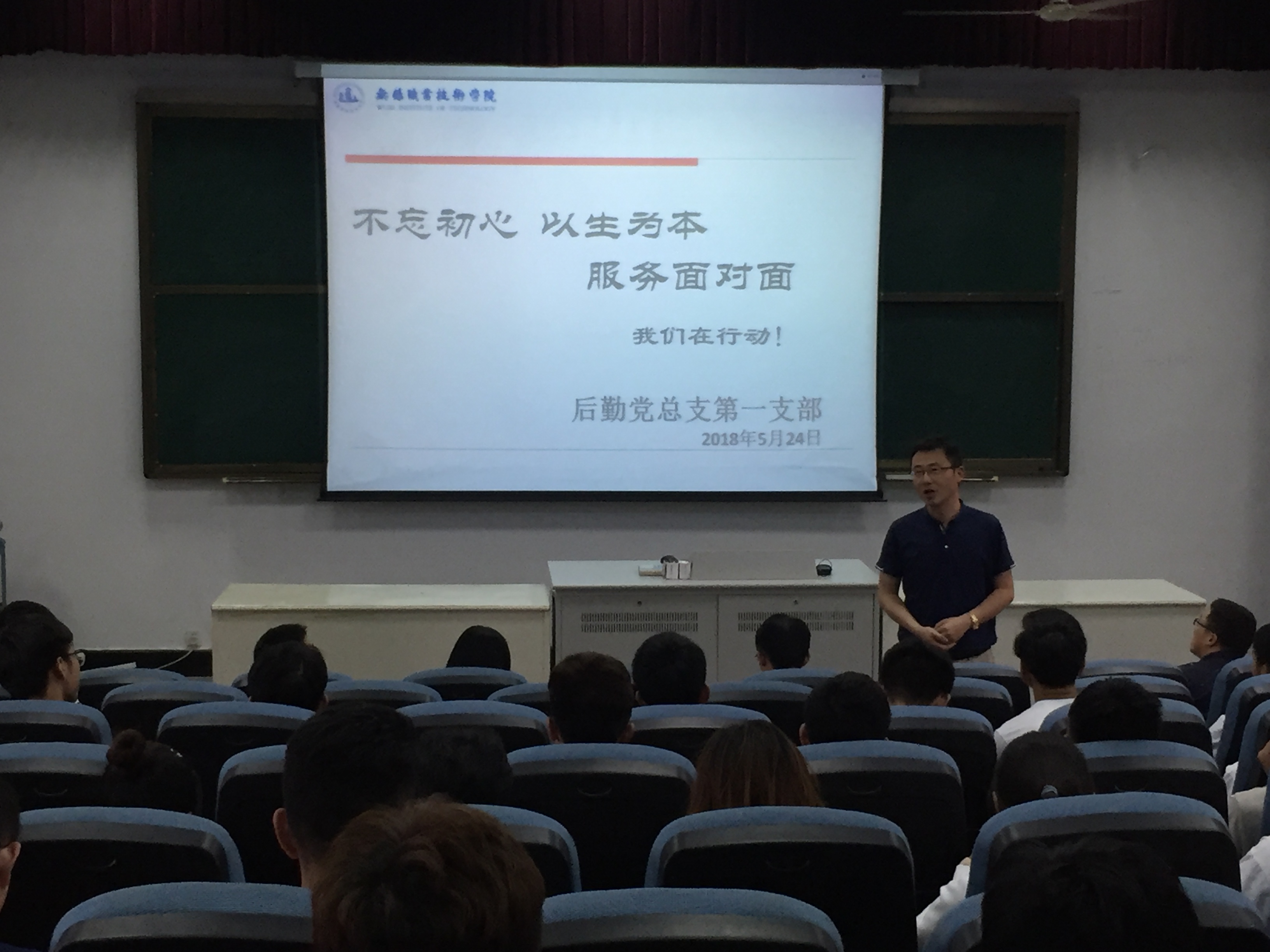 为深入贯彻落实党的十九大精神,提升后勤工作水准,后勤党总支第一支部于5月24日开展了主题为“不忘初心,以生为本,服务面对面,我们在行动”的系列党日活动。活动由支部书记毛龙生主持,支部党员和学生代表参加了本次活动。