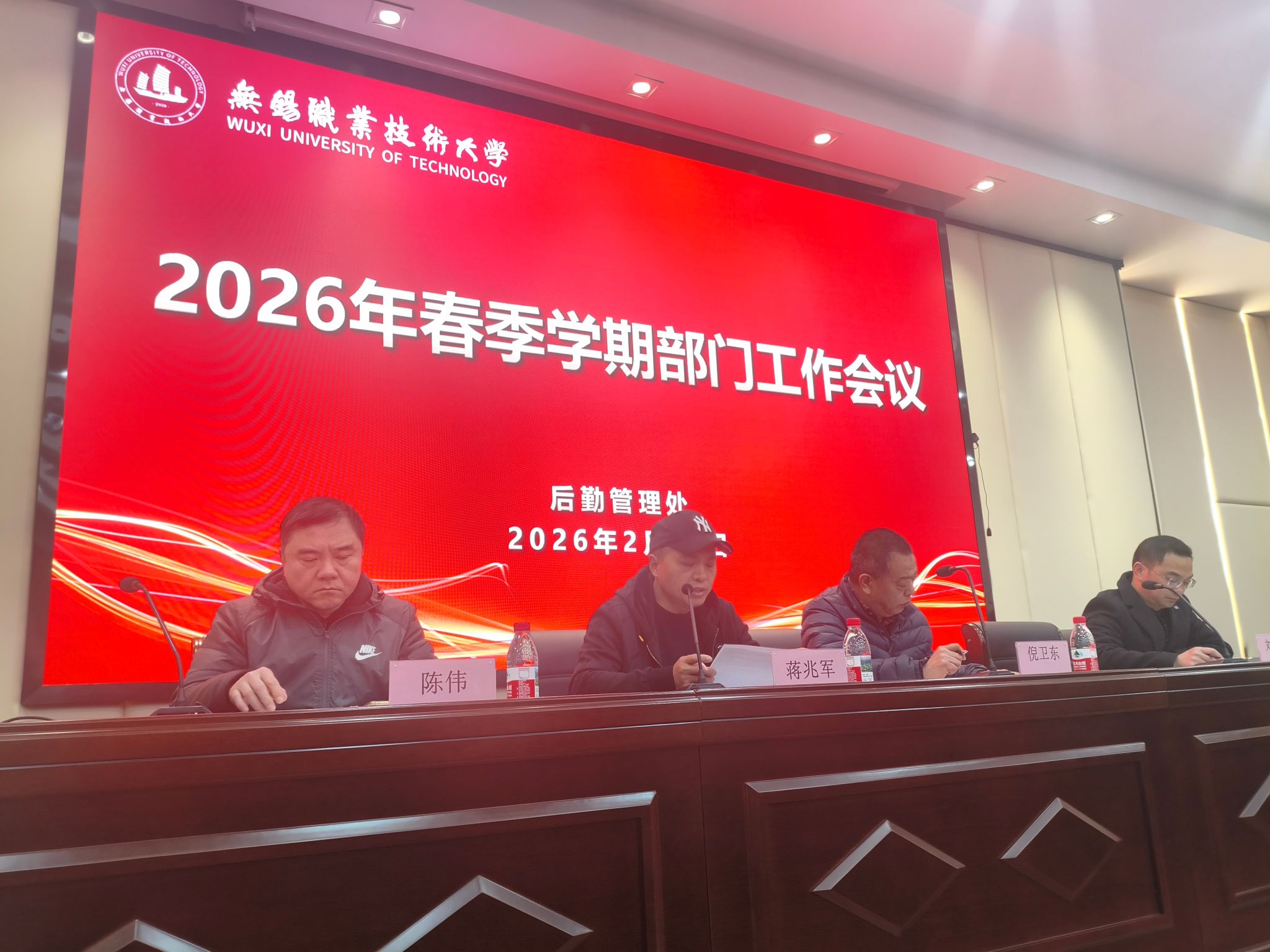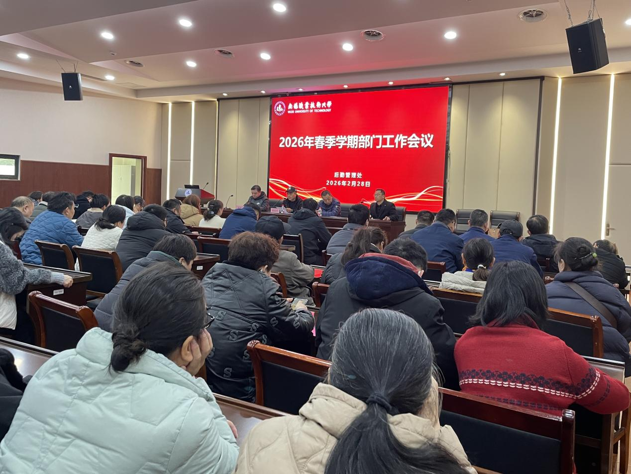 2026年2月28日下午,后勤管理处2026年春季新学期工作部署会议在国际交流中心第二报告厅召开。会议由后勤管理处处长蒋兆军主持,后勤管理处全体员工及第三方单位管理人员参加会议。